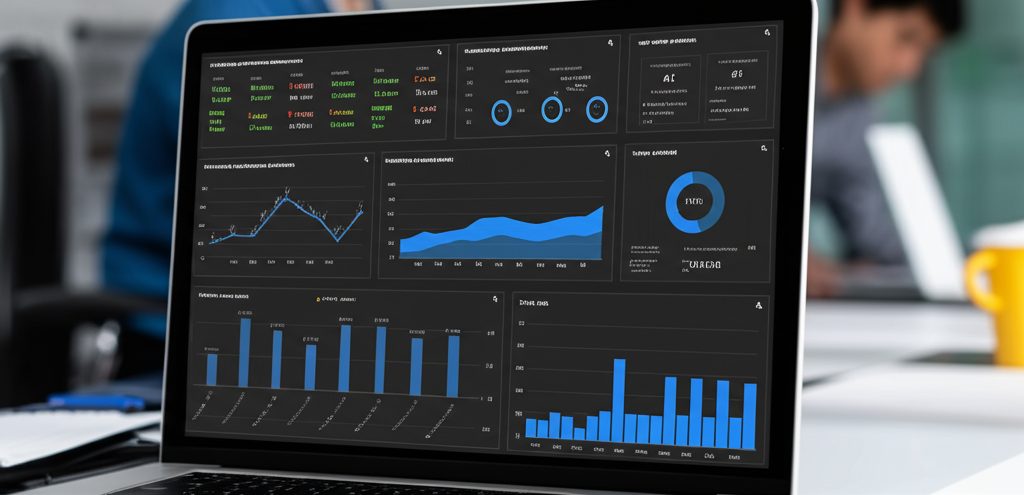 Sleek and modern dashboard interface for data visualization and analytics, featuring interactive charts, graphs, and user-friendly navigation.