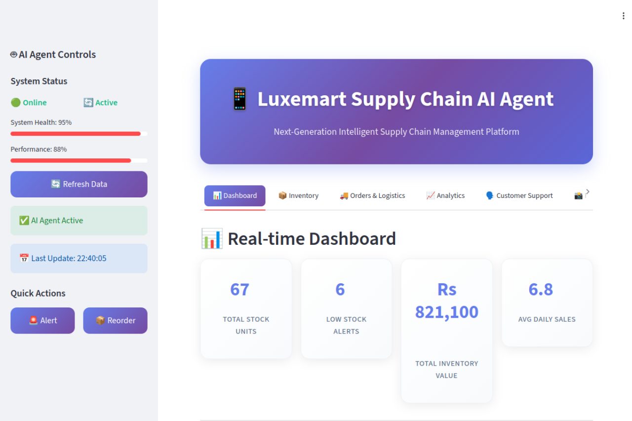 LuxeMart Supply Chain Analytics with Voice Support prototype — a Python-based analytics dashboard for supply chain monitoring and reporting.